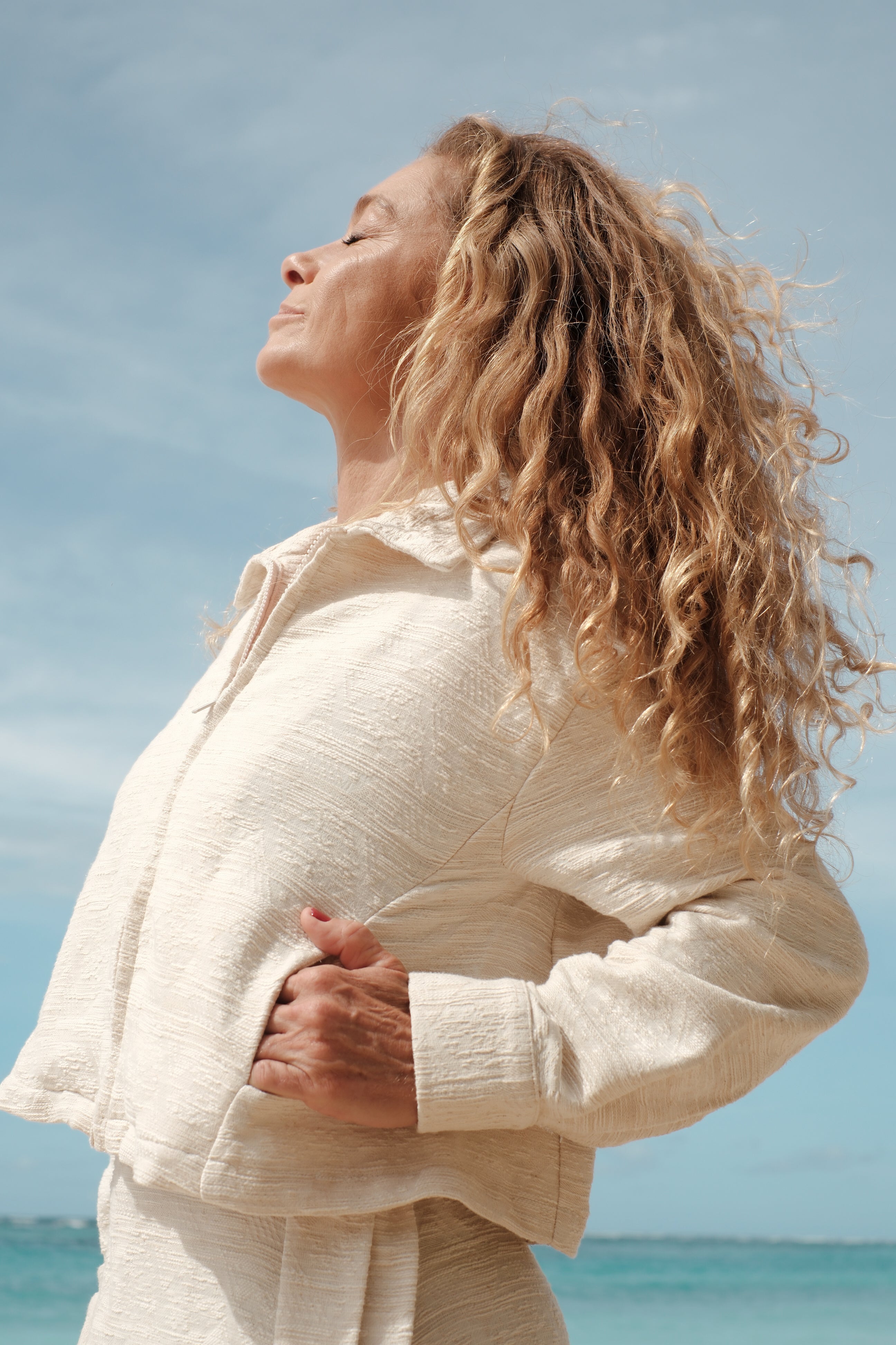 Vybírám materiály podle pocitu, kvality a toho, jak působí na těle — mohair, vlna, bavlna a hedvábí. Každý kousek je lehký, hřejivý a příjemný i pro citlivou pokožku.
